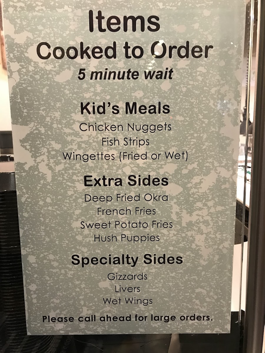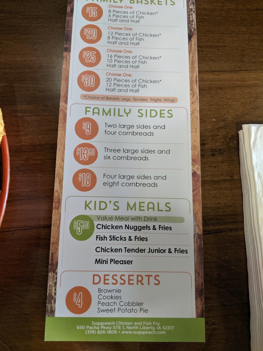 Sugapeach Chicken & Fish Fry Menu